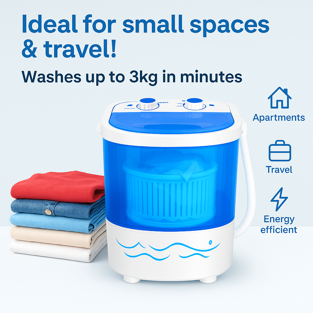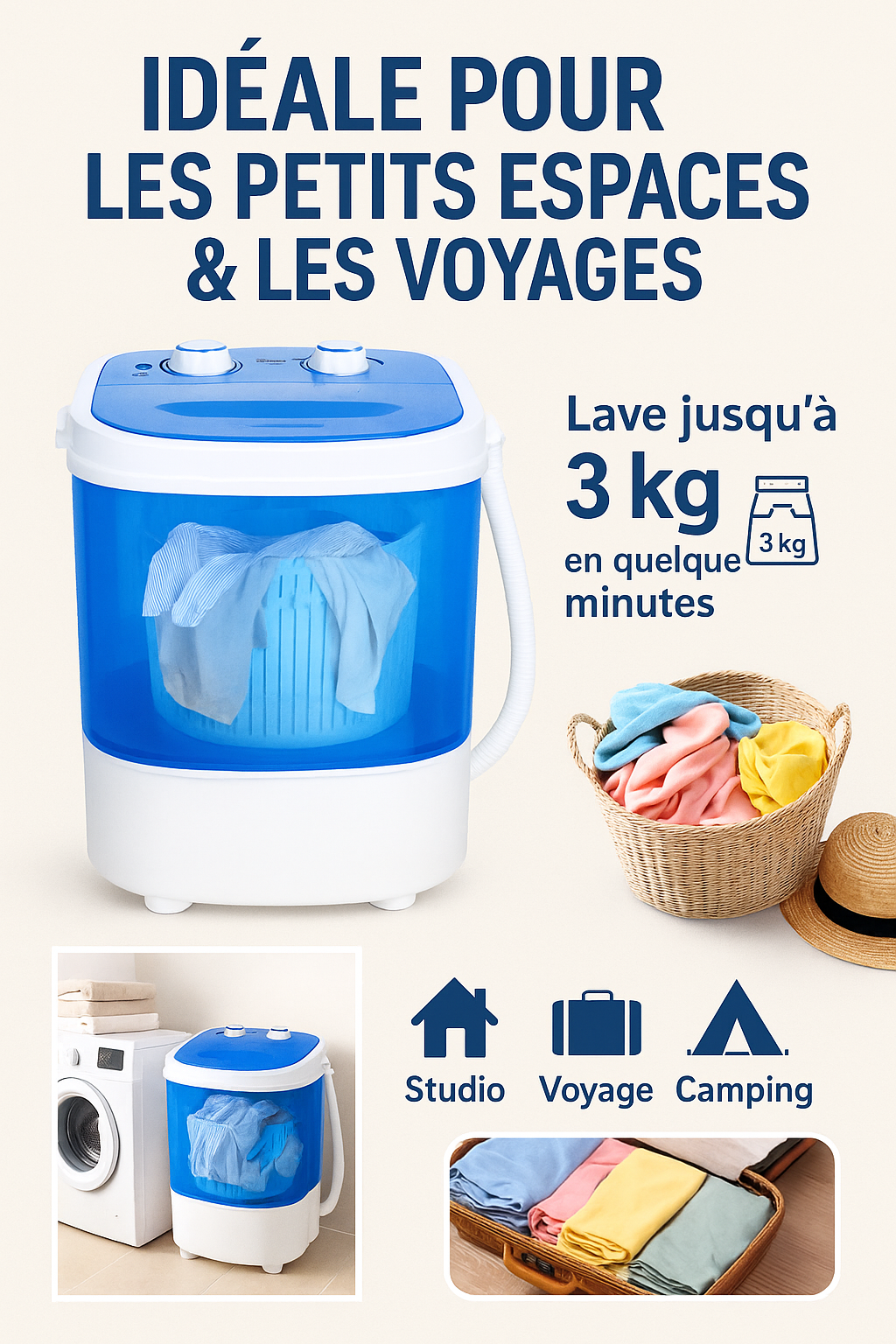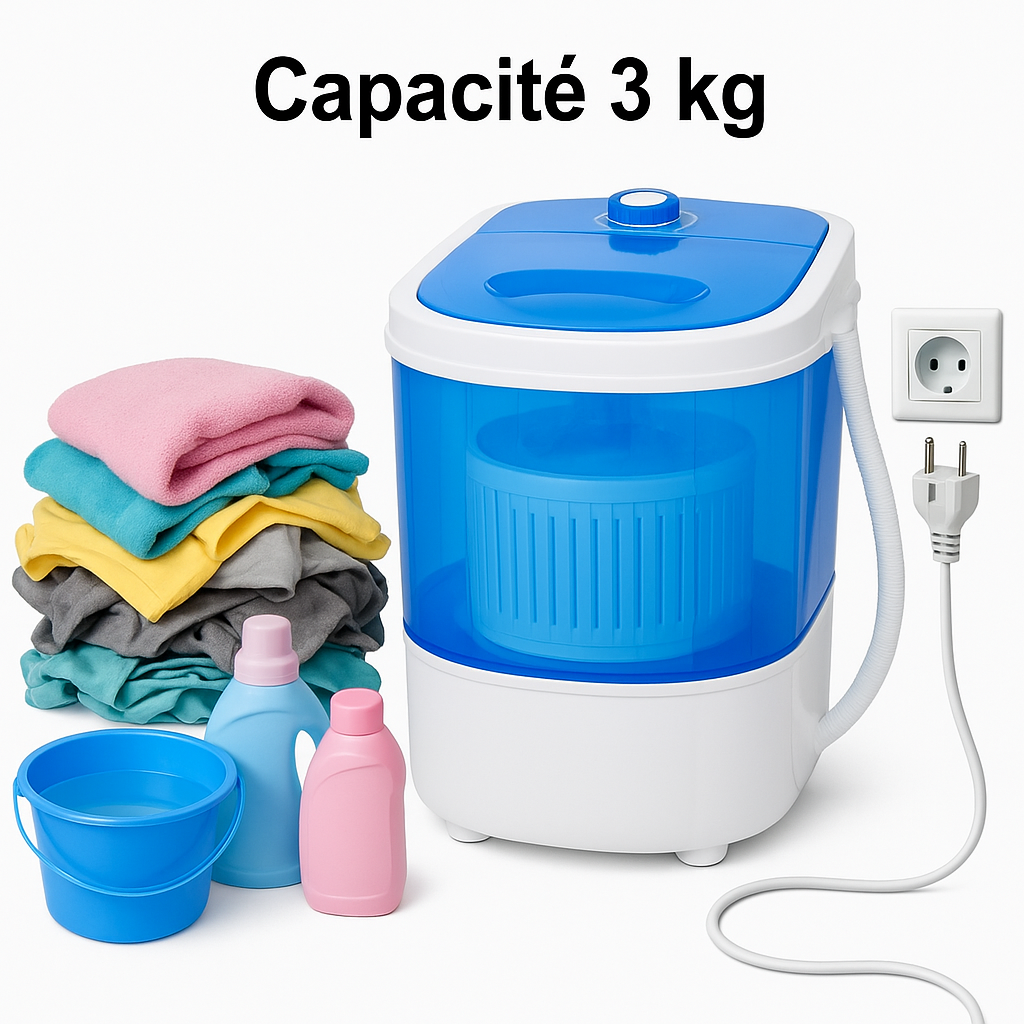 La Mini Machine à Laver FAYESHOP est l'appareil idéal pour ceux qui recherchent praticité et efficacité au quotidien. Avec sa capacité de 3 kg, elle est parfaite pour les petites charges : vêtements de bébé, sous-vêtements, linge de sport ou vêtements du quotidien.